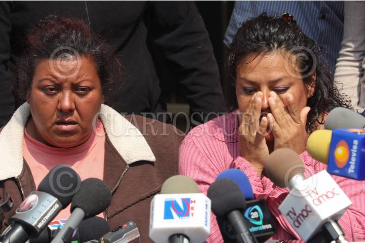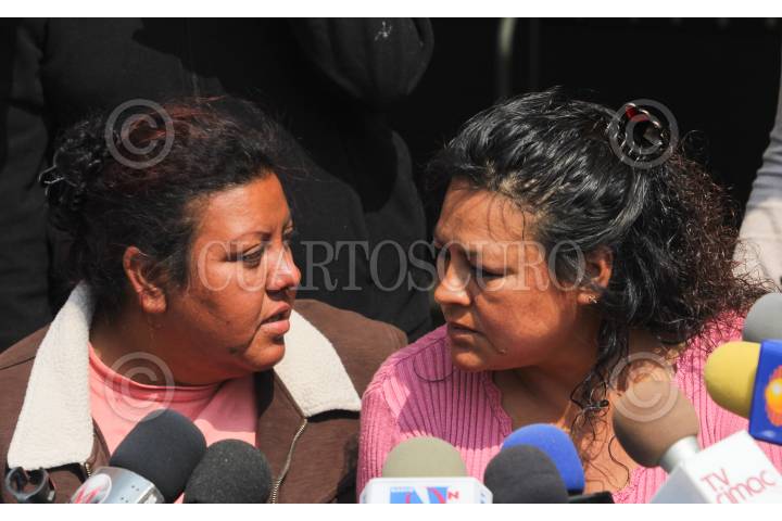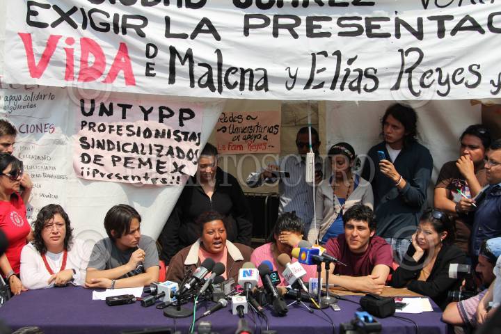 MÉXICO, D.F., 25FEBRERO2011.- Marisela y Olga Reyes, en compañia de diputados, ofrecieron una conferencia ante los medios de comunicacion afuera del campamento que mantenian en el Senado de la Republica para informar sobre el hayasgo de sus familiares Malena y Elias quienes fueron secuestrados en dias pasados y encontrados sin vida el dia de hoy por la mañana. En dicha rueda de prensa pidieron que "se esclarezcan sus muertes al gobierno federal". FOTO: ENRIQUE ORDÓÑEZ/CUARTOSCURO.COM
