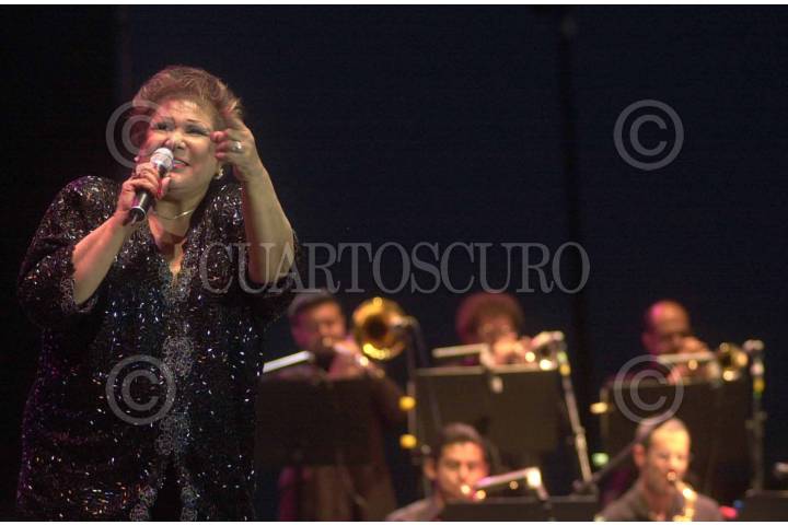 La legendaria cantante cubana Olga Guillot, cantando su exitos durante el concierto-homenaje en la plancha del zócalo capitalino, en el marco del XVIII Festival del Centro Histórico de la Ciudad de México FOTO: Oswaldo Ramírez/CUARTOSCURO.COM
