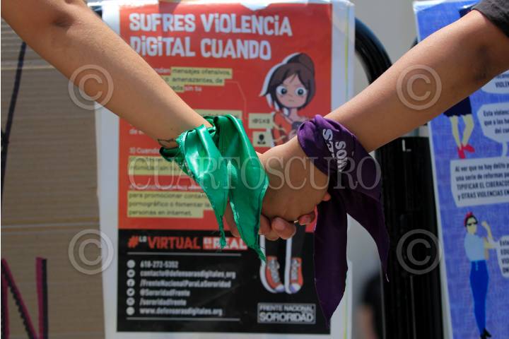 CIUDAD DE MÉXICO, 15OCTUBRE2023.- La activista Olimpia Coral, durante el acompañamiento a alumnas de de la Escuela Superior de Comercio y Administración del Instituto Nacional Politécnico, víctimas de violencia digital, quienes protestaron para exigir justicia debido a que han sufrido alteración de su imagen con Inteligencia Artificial por el agresor Diego "N", alumno identificado como uno de los creadores de alrededor de 166 mil imágenes alteradas de niñas y mujeres sin su consentimiento y hasta 20 mil videos de mujeres. FOTO: GRACIELA LÓPEZ /CUARTOSCURO.COM