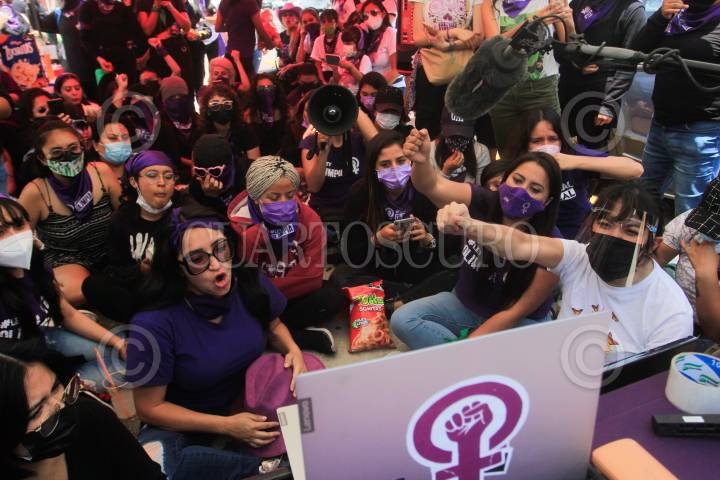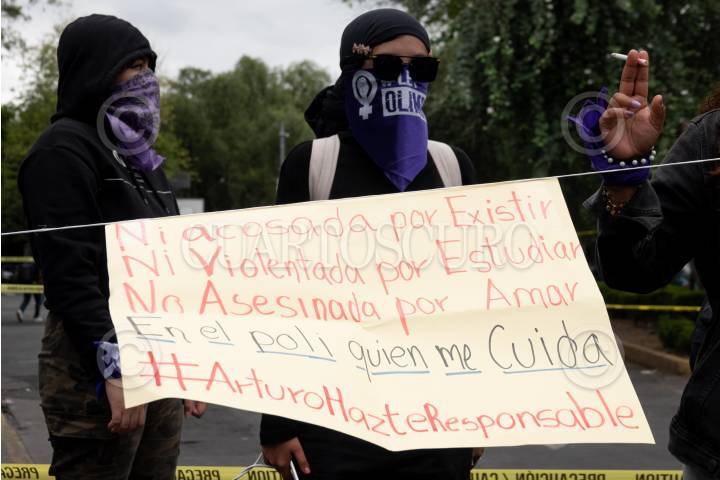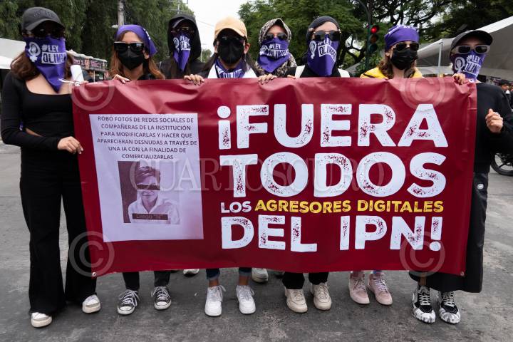 CIUDAD DE MÉXICO, 15OCTUBRE2023.- Alumnas de de la Escuela Superior de Comercio y Administración del Instituto Nacional Politécnico, víctimas de violencia digital, protestaron para exigir justicia debido a que han sufrido alteración de su imagen con Inteligencia Artificial por el agresor Diego "N", alumno identificado como uno de los creadores de alrededor de 166 mil imágenes alteradas de niñas y mujeres sin su consentimiento y hasta 20 mil videos de mujeres. FOTO: GRACIELA LÓPEZ /CUARTOSCURO.COM