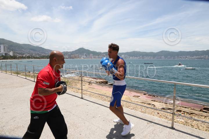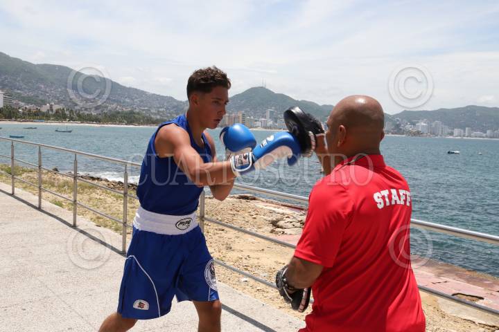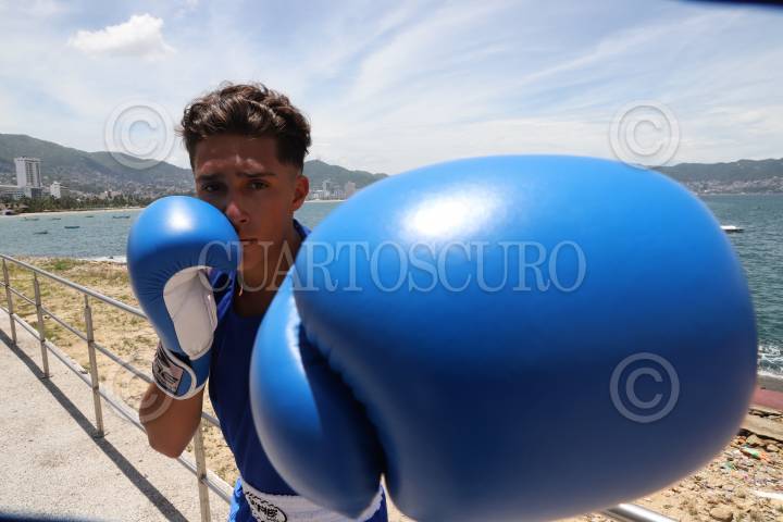 ACAPULCO, GUERRERO, 24JUNIO2018.- El joven boxeador Gustavo “el Dorado” Rivera Ríos Sánchez, representante de la entidad en boxeo, ganó la medalla de bronce en la olimpiada nacional 2018, efectuada en Chihuahua, Chihuahua. Gustavo Rivera es entrenado por su manager Enrique Zacapala Guzmán, quien se encuentra al frente del club de la Unidad Deportiva Acapulco. A pesar de haber ganado, el joven boxeado continúa entrenando en la costera, justo al lado del parque de la Reyna. FOTO: BERNANDINO HERNÁNDEZ /CUARTOSCURO.COM