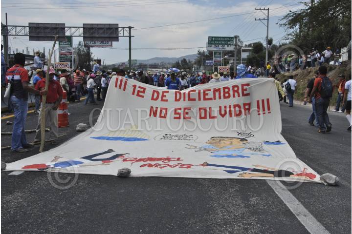 CHILPANCINGO, GUERRERO, 11ABRIL2013.- Integrantes de la Coordinadora Estatal de Trabajadores de Educación Guerrero marcharon de su campamento hacia la Autopista del Sol, mientras la comisión encabezada por Minervino Moran Hernández y Gonzalo Juárez Ocampo, dirigentes de la Ceteg hicieron entrega de la propuesta al diputado local del congreso local Bernardo Ortega. Miles de cetgistas marcharon de Norte a Sur con rumbo al parador del sol, donde a las 12 con 55 minutos ya estaban bloqueando los dos sentidos de la autopista esto como medida de presión al congreso local y al gobierno estatal para que se reforme la ley educativa estatal. A las 14:39 minutos llegaron los primeros policías federales de lado sur de Chilpancingo, sin equipo antimotines y a las 14:54 minutos llegaron policías federales del lado norte de Chilpancingo con equipo antimotines, de igual forma que el pasado 5 de abril con la idea replegar a los manifestantes, el comandante Espartaco invito a los profesores a retirarse de la vía federal, sin embargo, tuvo la negativa y cuando se preparaban para el desalojo, se escucho la voz de los cetegistas, “compañeros daremos muestra de civilidad y la negociación ya esta avanzada nos retiraremos y no caigamos en provocaciones”, los maestros se retiraron por el carril de la autopista con destino al congreso del estado, donde esperaron el resultado final del dialogo, con la comisión de legisladores y profesores. FOTO: JOSÉ I. HERNÁNDEZ /CUARTOSCURO.COM
