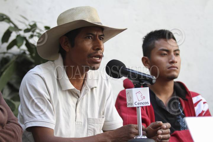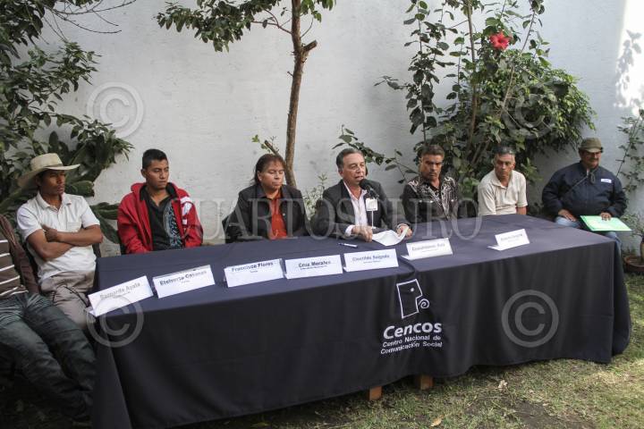 MÉXICO, D.F. 20ENERO2015.- Bernardo Ayala, Coordinador de la Policía Comunitaria, Etelverto Cavanas, testigo, Francisco Flores, testigo, Cruz Morales, comandante de la PC, Cleotilde Salgado, hermana de Nestora Salgado, Cuauhtémoc Ruiz, del Comité Nestora Libre y Roberto Salgado, hermano de Nestora, durante la Conferencia del Comité por la libertad de Nestora Salgado, después de los señalamientos en contra de la liberación por parte de la señora Miranda de Wallace y de Alejandro Martí. FOTO: ADOLFO VLADIMIR /CUARTOSCURO.COM
