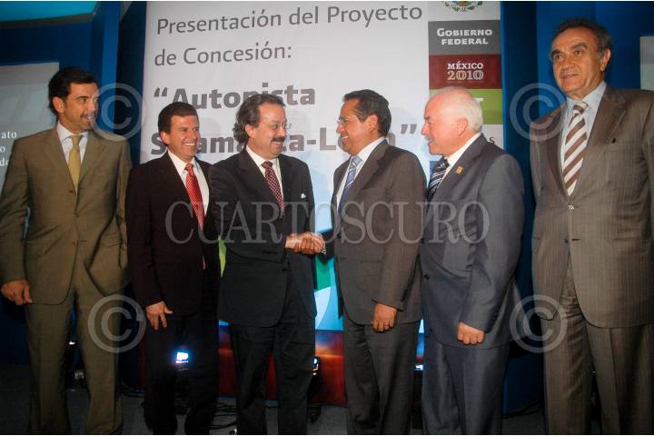 MÉXICO, D.F., 11MAYO2010.- Juan Molinar Horcasitas, titular de la Secretaría de Comunicaciones y Transportes y Juan Manuel Oliva, gobernador de Guanajuato, signaron la firma del proyecto de concesión de la autopista Salamanca-León; esto en el salón el Molino de la Hacienda Los Morales. FOTO: CUARTOSCURO.COM