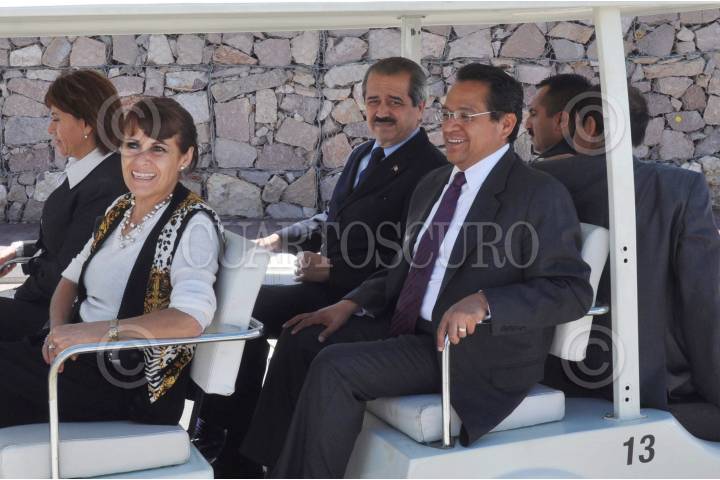 YURIDIA, GUANAJUATO, 08JUNIO2010.- José Ángel Cordova Villalobos, secretario de Salud, y el gobernador del Estado, Juan Manuel Oliva, colocaron la primera piedra de los hospitales comunitarios Yuridia y Moroleon con una inversión de más de 175 millones de pesos, según autoridades gubernamentales.. FOTO: EDUARDO MORALES/CUARTOSCURO.COM