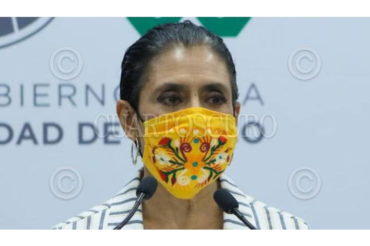 Oliva López, titular de la Secretaria de Salud de la Ciudad, durante la conferencia de prensa de la Jefatura de Gobierno.