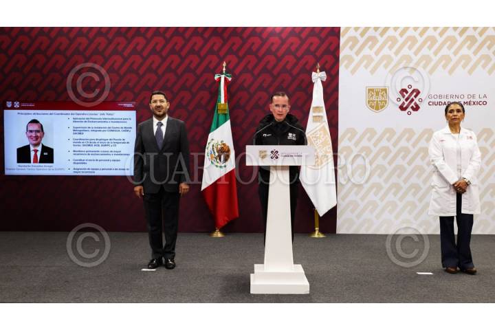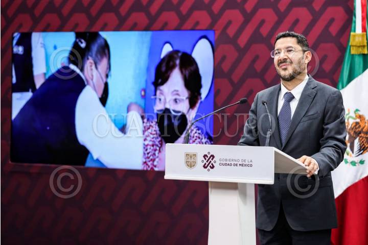 El Jefe del Gobierno Capitalino, Martí Batres Guadarrama en la conferencia de prensa diaria en el Palacio del Ayuntamiento. Lo acompañaron Oliva López Arellano, titular de salud y el jefe Tlaloc, Humberto Gonzalez encargado de vigilar las lluvias en la