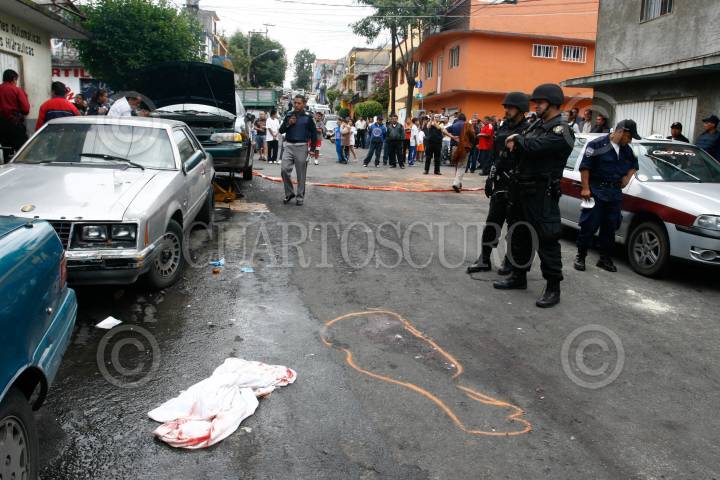 MÉXICO, D.F., 16FEBRERO2010.- Un presunto asaltante de aproximadamente 22 años de edad perdió la vida de un impacto de bala después una persecución con locatarios y policías sobre la calle 17 en la colonia Olivar del Conde en la delegación Alvaro Obregón. FOTO: CUARTOSCURO.COM