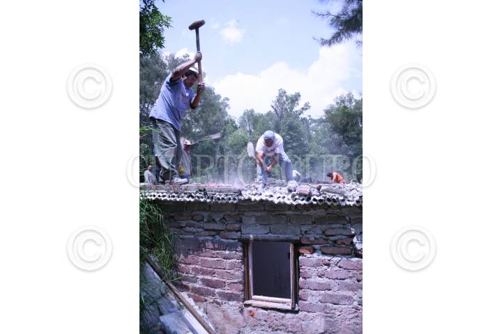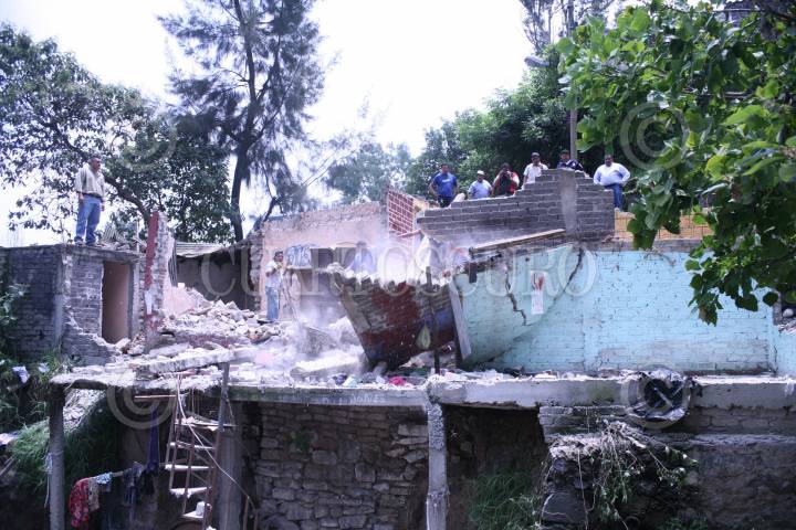 MÉXICO D.F., 04AGOSTO2008.- Se realizó un operativo de demolición de viviendas en alto riesgo por las lluvias ya que se encuentran en zonas de deslaves , las viviendas se encuentran ubicadas en los predios La Virgen, Barranca del Moral, de la colonia Olivar de los Padres. FOTO: CUARTOSCURO.COM