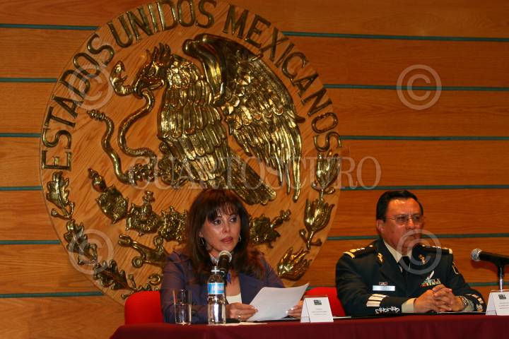 MÉXICO, D.F., 11FEBRERO2009.- Marisela Morales Ibáñez titular de la SIEDO, junto con Luis Arturo Oliver Cen, subjefe operativo del Estado Mayor de la Defensa Nacional, ofreció una conferencia de prensa para informar la detencion de integrantes de la organizacion "Cardenas Guillen" en cancún Quintana Roo. FOTO: SAÚL LÓPEZ/CUARTOSCURO.COM