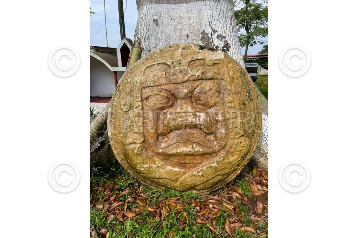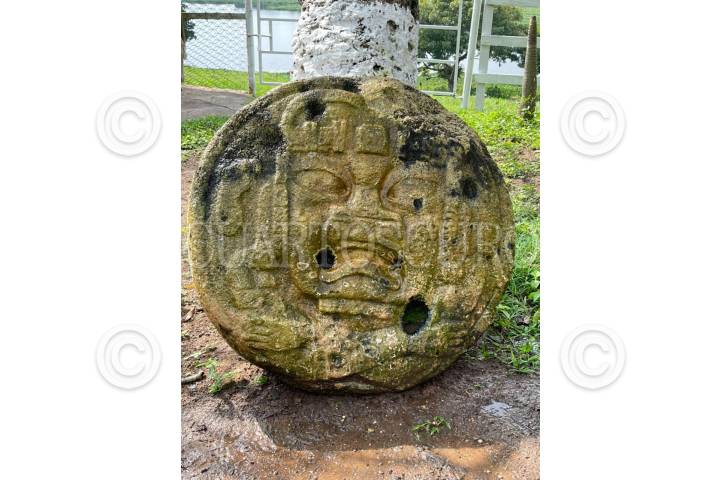 El Centro INAH Tabasco recuperó dos relieves olmecas de “contorsionistas”, procedentes de Tenosique. Los relieves, elaborados en roca caliza y con diámetro aproximado de 1.40 metros, guardan una iconografía similar: en la parte superior y rodeada por fauces celestes, destaca una diadema formada por cuatro mazorcas, y al centro, un espejo con la llamada “cruz olmeca” (glifo que marca los atavíos de la élite y se asocia con la figura del jaguar).