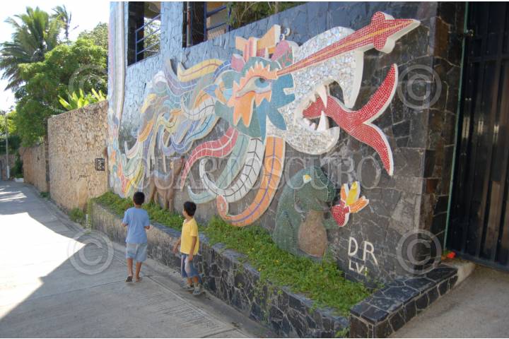 ACAPULCO, GUERRERO, 25AGOSTO2009.- Los murales de Diego Rivera que se encuentran en la casa de la extinta Dolores Olmedo, ubicados en la calle Inalámbrica del Fraccionamiento La Pinzona de Acapulco, son admiradas por turistas nacionales y extranjeros, hace unos días fue puesta en venta por una empresa de bienes raíces, lo que ha provocado polémica y el descontento entre la sociedad por considerarlo patrimonio de la nación. FOTO: MARINO D. VALDEZ/CUARTOSCURO.COM