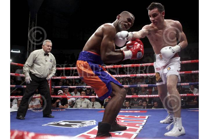 CULIACAN, SINALOA 18MARZO2012.- Ayer por la noche Omar Chavez venció al colombiano Emilio Julio por TKO en el décimo asalto de la pelea. El hijo de la leyenda mostró mejoría en su boxeo el cual domino en todos los asaltos a su contrincante. FOTO: RASHIDE FRÍAS /CUARTOSCURO.COM