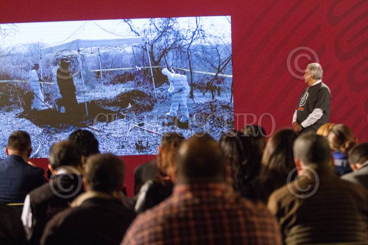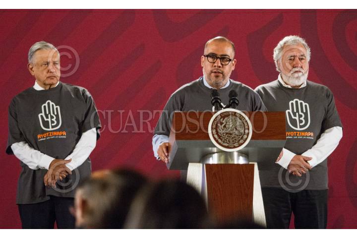 CIUDAD DE MÉXICO, 26SEPTIEMBRE2019.- Andrés Manuel López Obrador, Presidente de México; Alejandro Encinas, subsecretario de Derechos Humanos de la Segob, y Omar Gómez Trejo, titular de la Unidad Especial de Investigación y Litigación para el caso Ayotzinapa de la Fiscalía General de la República (FGR), ofrecieron una conferencia en Palacio Nacional, en la cual hablaron del estado de la investigación de la desaparición de lus 43 estudiantes de Ayotzinapa, en el marco de quinta aniversario de estos hechos. FOTO: VICTORIA VALTIERRA /CUARTOSCURO.COM