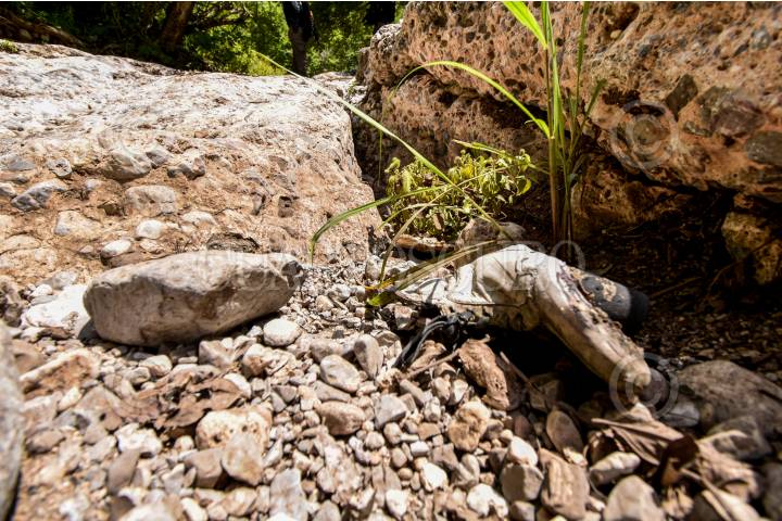 Objetos utilizados en la búsqueda dentro de la zona conocida como "La barranca de la Carnicería" donde Alejandro Encinas y Omar Gómez Trejo realizaron un recorrido acompañados de medios de comunicación.