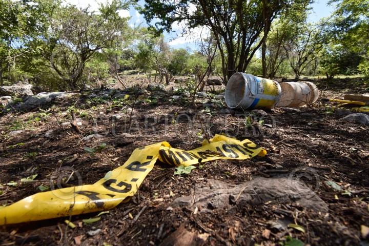 Objetos encontrados en la zona conocida como "La barranca de la Carnicería" donde Alejandro Encinas y Omar Gómez Trejo realizaron un recorrido acompañados de medios de comunicación.