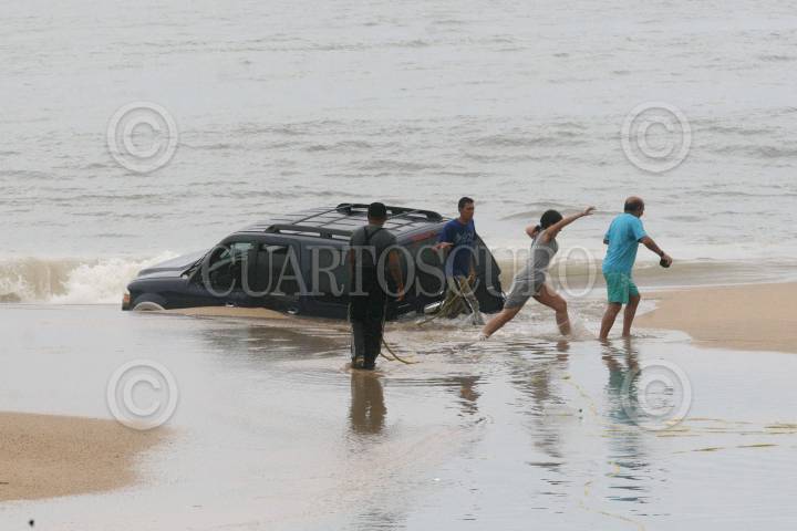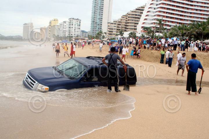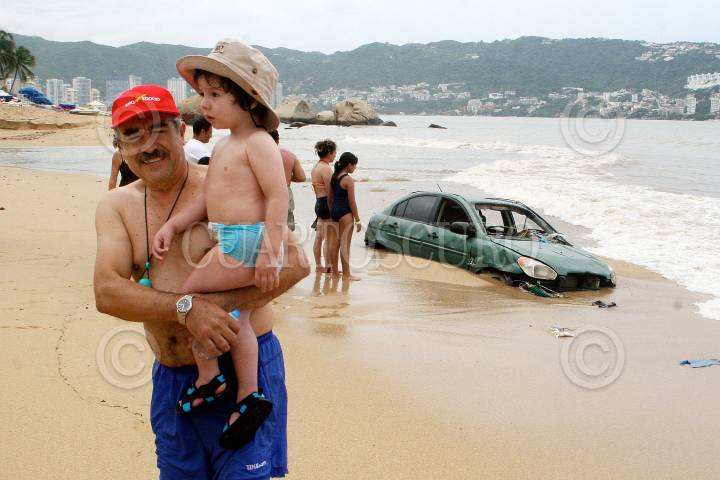 ACAPULCO, GUERRERO, 16AGOSTO2010.- Una fuerte tromba ocurrida la madrugada de este lunes como consecuencia de la onda tropical número 22 provocó que varios vehículos fueran arrastrados hacia la bahía, así como inundaciones en zonas bajas y la zona turística, y caída de árboles y postes. La tormenta arrastró por lo menos cinco vehículos al mar, algunos de los cuales no han podido aún ser sacados. FOTO: JAVIER VERDIN/CUARTOSCURO.COM