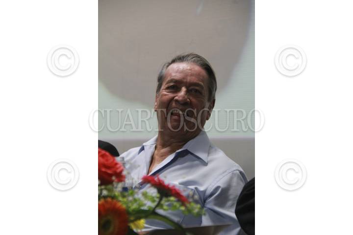 CUERNAVACA, MORELOS, 12FEBRERO2015.- El escritor mexicano José Agustín, perteneciente a la llamada "literatura de la onda" fue homenajeado esta noche en el Cine Morelos, donde también se realizó la presentación del libro "Manos llenas de sol" de José Antonio Aspe. FOTO: PATRICIA MORALES / CUARTOSCURO.COM