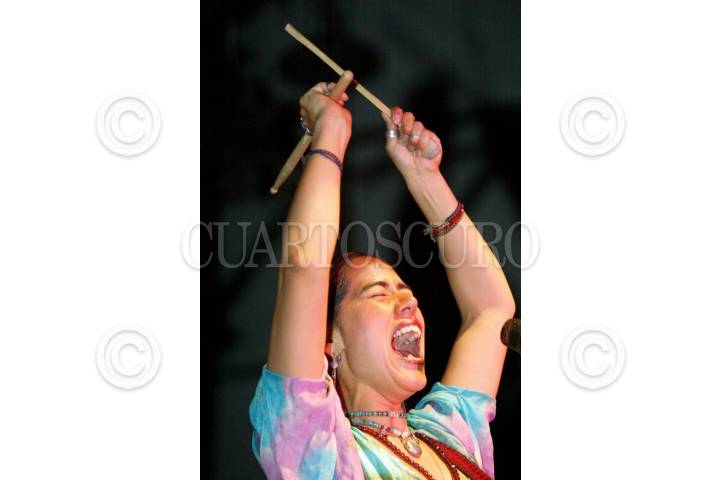 México, D.F. 03 JUNIO 2004.- La cantante Lila Downs presentó su más reciente producción "One blood-Una sangre" en el centro Cultural de España. FOTO: Rita Canto/CUARTOSCURO.COM
