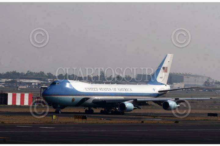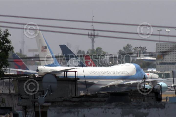 MÉXICO, D.F., 16ABRIL2009.- Air Force One Boeing 747-200B de la Fuerza Aérea Estadounidense, el cual transportaba y custodiaba al presidente Barak Obama, con destino a la Ciudad de México. FOTO: EDGAR ROMERO CHACÓN/CUARTOSCURO.COM