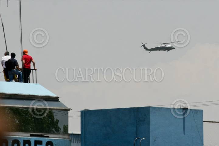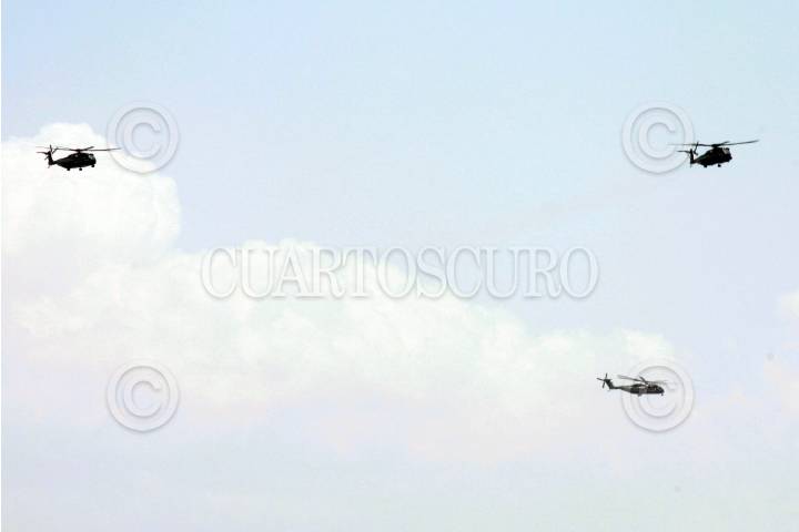 MÉXICO, D.F., 16ABRIL2009.- El helicóptero Marine One, en el que Barack Obama, presidente de los Estados Unidos se traslado del Aeropuerto Internacional de la Ciudad de México al Campo Militar Marte, para luego partir a la residencia oficial de Los Pinos. FOTO: ISAAC ESQUIVEL/CUARTOSCURO.COM