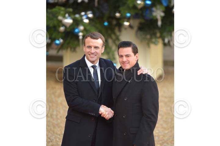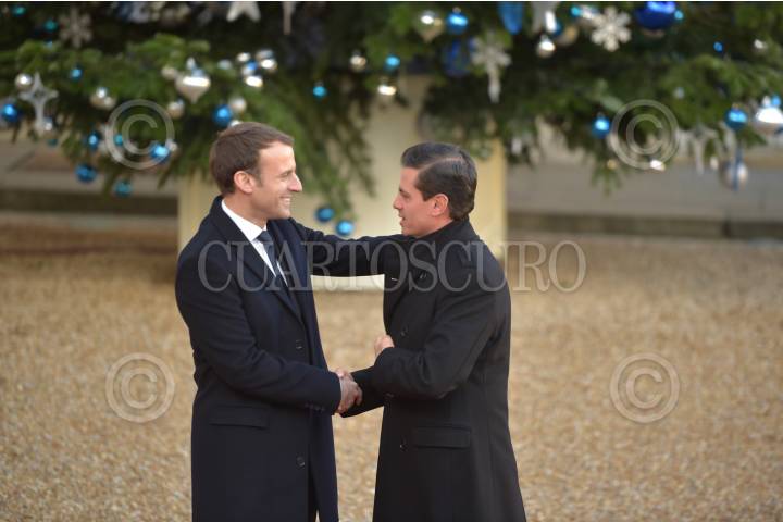 PARÍS, FRANCIA, 12DICIEMBRE2017.- En el marco de las actividades de la Cumbre “One Planet” sobre Cambio Climático, el Presidente Enrique Peña Nieto fue recibido en el Palacio de Elíseo por su homólogo francés, Emmanuel Macron. FOTO: PRESIDENCIA /CUARTOSCURO.COM