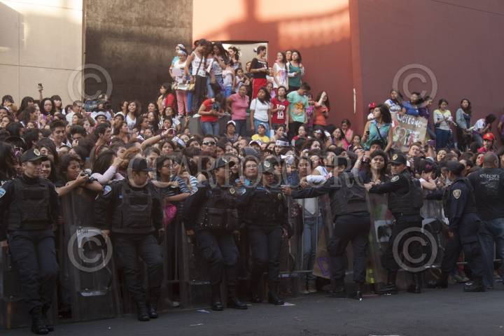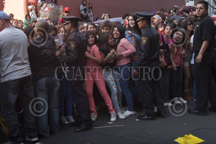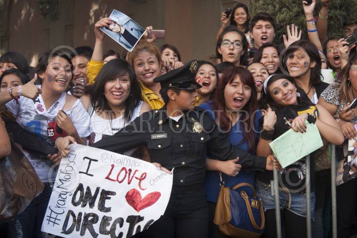 MÉXICO, D.F., 07JUNIO2013.- Cerca de 4 mil fans de la banda de pop británica One Direction, esperaron el arribo del grupo juvenil a las afueras de un hotel sobre Paseo de la Reforma en el marco de sus dos presentaciones que tendrán los días Sábado y Domingo en el Foro Sol. La banda de pop cambió de último momento su estancia a un hotel de Polanco. FOTO: FRANCISCO RODRÍGUEZ /CUARTOSCURO.COM