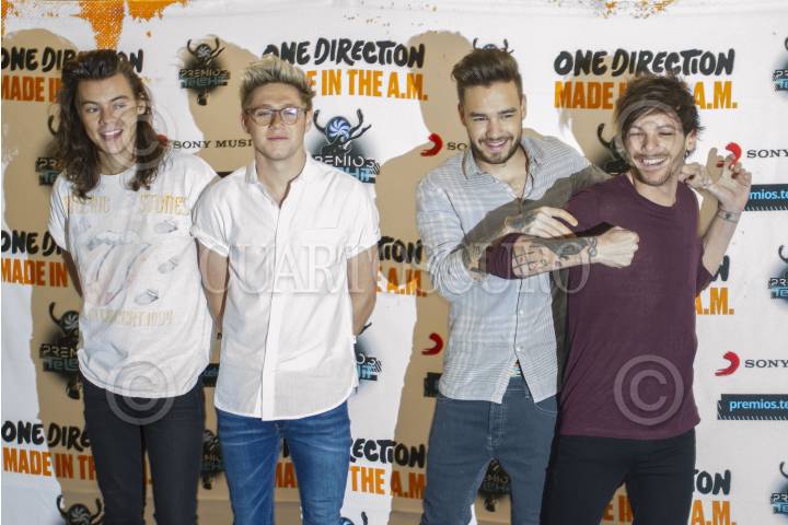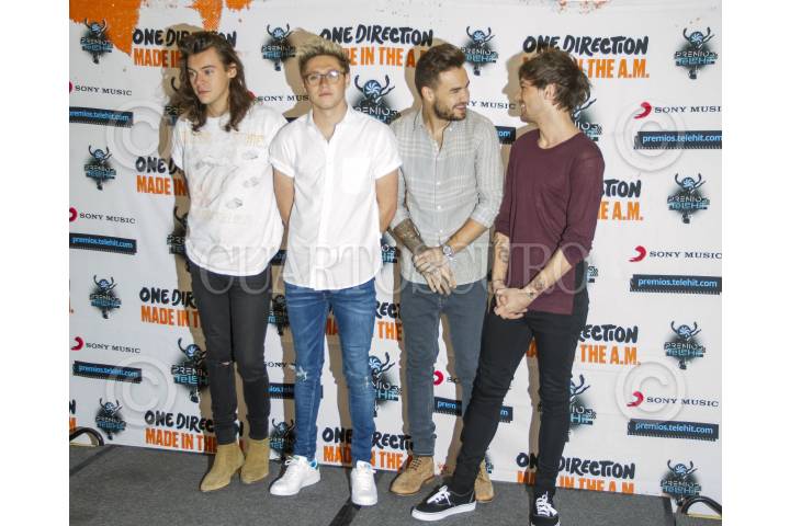 MÉXICO, D.F., 25NOVIEMBRE2015.- Harry Styles, Louis Tomlinson, Niall Horan y Liam Payne, integrantes del grupo One Direction, posan para los fotógrafos, previo a la conferencia de prensa que ofrecieron para hablar de su presentación en una entrega de premios este jueves en el Foro Sol. FOTO: ISAAC ESQUIVEL /CUARTOSCURO.COM