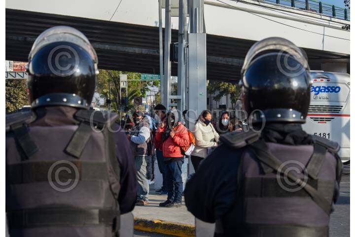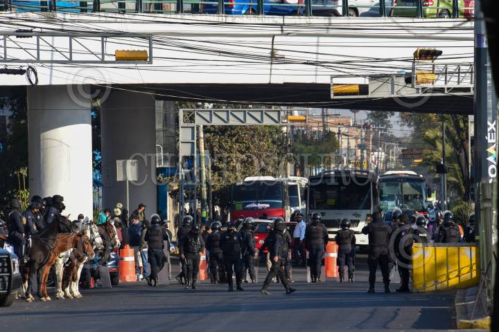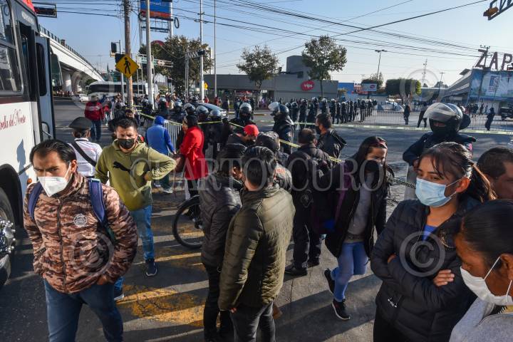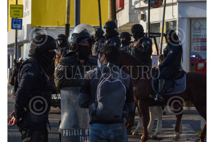 Realizan operativo confinamiento en la zona de la Terminal de Autobuses de Toluca y el Mercado Juárez ante el aumento de contagios por COVID-19, y disminuir la movilidad peatonal y vehicular en el lugar.