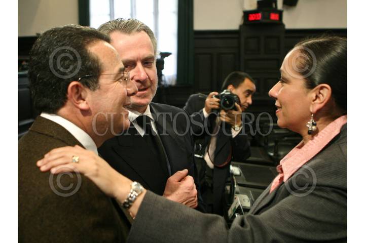 MÉXICO, D.F., 06NOVIEMBRE2008.- Los senadores Agustín Arroyo, Santiago Creel y María Elena Orantes antes de comenzar la sesión ordinaria del Senado de la República. FOTO: RODOLFO ANGULO/CUARTOSCURO.COM