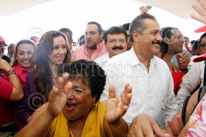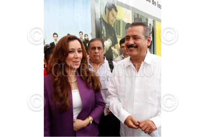TUXTLA GUTIERREZ, CHIAPAS 20OCTUBRE2010.- María Elena Orantes López, senadora priísta, acompañado de Manlio Fabio Beltrones, coordinador del Senado de la República, durante el 4to Informe de Gobierno de la senadora. FOTO: CUARTOSCURO.COM
