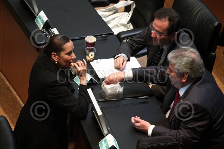 MÉXICO, D.F., 27ABRIL2011.- El senador del PRI, María Elena Orantes comparte galletas con senadores de su bancada durante la sesión ordinaria del Senado de la República en donde se aprobó por lo general la Reforma Política. FOTO: RODOLFO ANGULO/CUARTOSCURO.COM