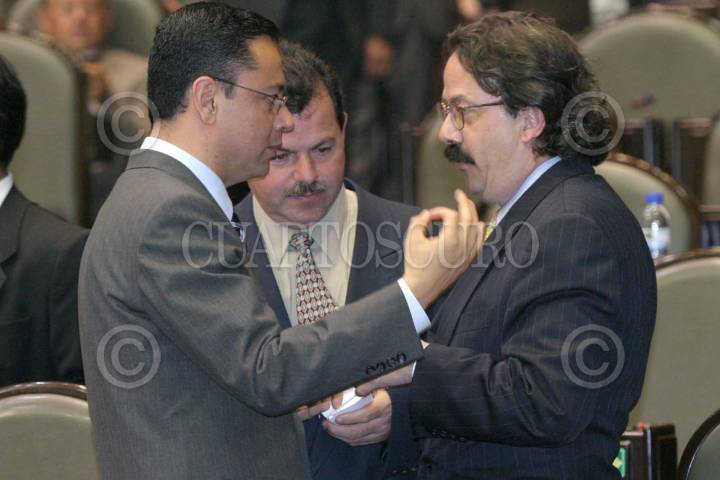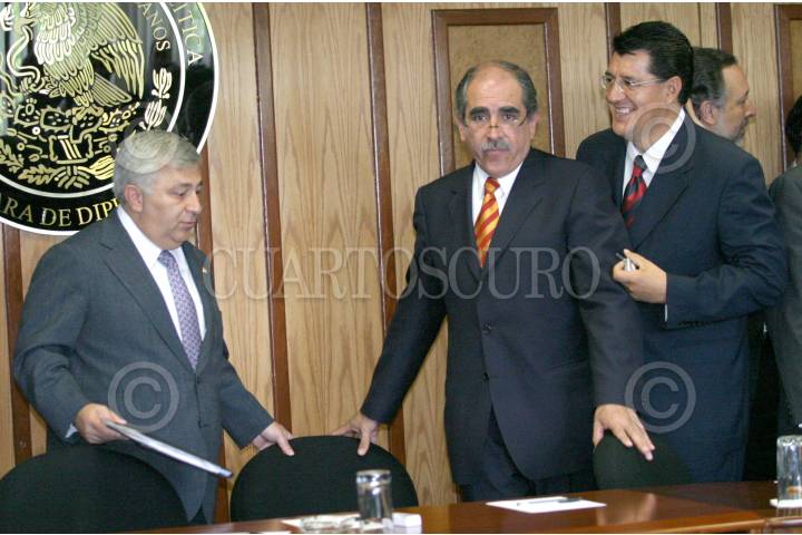 MÉXICO D.F. 07AGOSTO2007.-Juan Molinar Orcasitas, Director General del IMSS, comparecio ante la Comisión de Salud de la Cámara de Diputados.En la imagen es acompañado durante su comparecencia por los diputados, Miguel Angel Navarro. del PRD y Emilo Gamboa Patrón del PRI. FOTO: GUILLERMO PEREA/CUARTOSCURO.COM