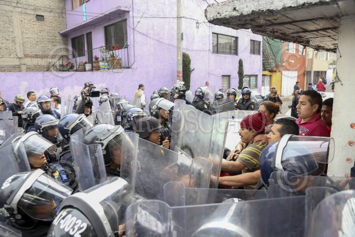 MÉXICO, D.F., 13FEBRERO2015.- Dos personas detenidas fue el saldo del enfrentamiento entre granaderos y vecinos del Eje 5 Sur despues de autoridades de la SSP-DF y personal de la Delegación Iztapalapa realizaron un operativo de recuperación de vialidades en la colonia Nueva Rosita. FOTO: SAÚL LÓPEZ /CUARTOSCURO.COM
