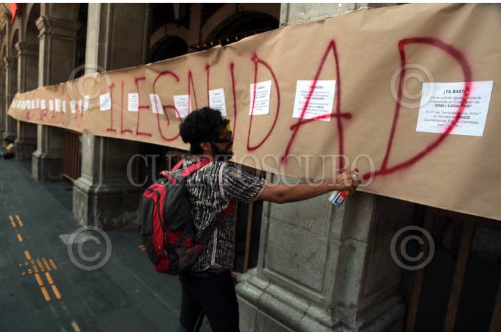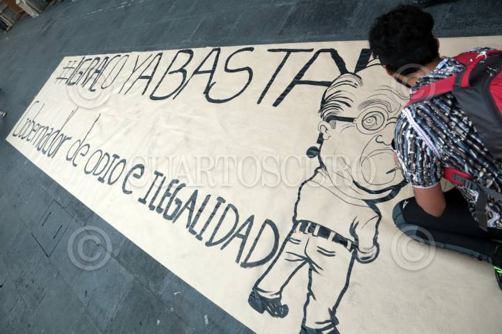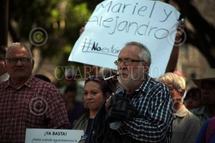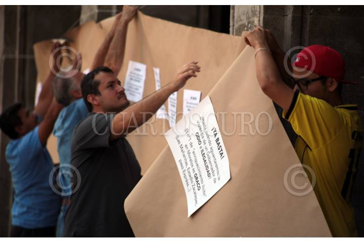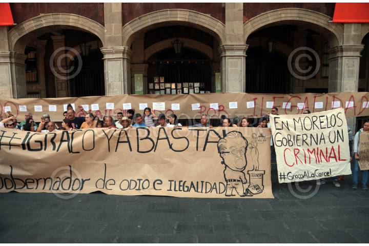CUERNAVACA, MORELOS, 12NOVIEMBRE2017.- Este medio día activistas sociales y trabajadores de confianza de la Universidad Autónoma del Estado de Morelos (UAEM) manifestaron su apoyo al rector Alejandro Vera Jiménez y a su esposa María Elena Ávila Guerrero, luego que ayer un juez emitió una orden de aprehensión por enriquecimiento ilícito en su contra. Los manifestantes clausuraron simbólicamente el palacio de gobierno, y anunciaron que sus protestas continuaran hasta que el rector deje de ser perseguido por el gobernador Graco Ramírez Abreu. La Fiscalía Anticorrupción de Morelos solicito a la PGR e Interpol su colaboración para la detención del matrimonio del cual se desconoce su paradero. El poeta Javier Sicilia asistió a apoyar a Vera Jiménez. FOTO: MARGARITO PÉREZ RETANA /CUARTOSCURO.COM