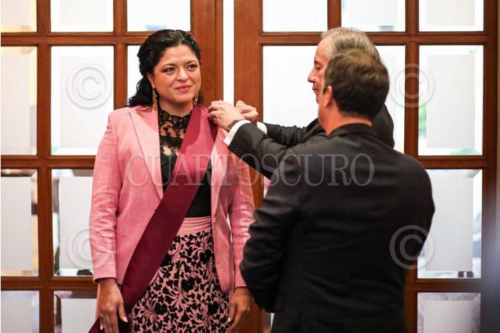 La secretaria de Cultura de México, Alejandra Frausto, recibe la condecoración de la Orden “El Sol del Perú”.