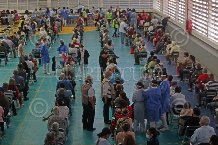 Vista general del modulo del Parque San Rafael, donde el día de hoy se llevo a cabo la segunda jornada de la aplicación de la vacuna contra el Covid-19 a personas de la tercera edad.