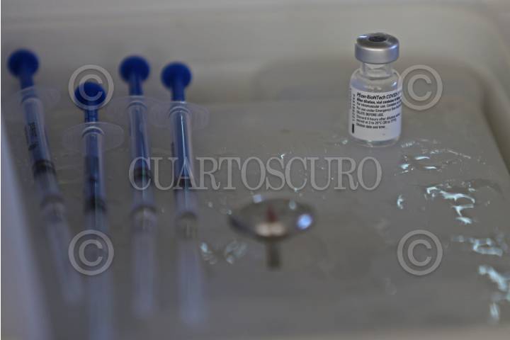 Imagen del Biológico Pfizer-BioNTech antes de ser aplicado a los adultos mayores de Tlajomulco de Zúñiga.