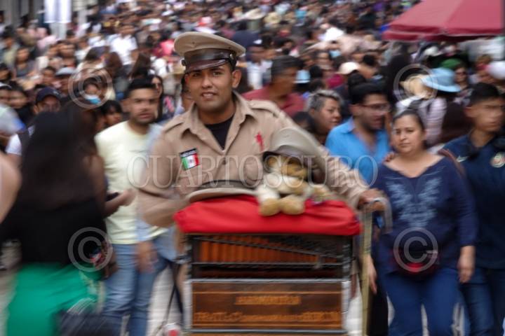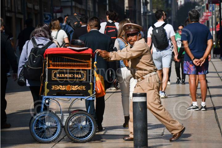 CIUDAD DE MÉXICO, 04ABRIL2025. Un organillero llena las calles del centro de la ciudad con melodías, mientras pide una moneda a los transeúntes que recorren las calles. FOTO: EDGAR NEGRETE LIRA/CUARTOSCURO.COM