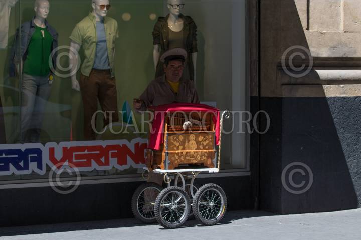 Organillero toca en calle Francisco I. Madero