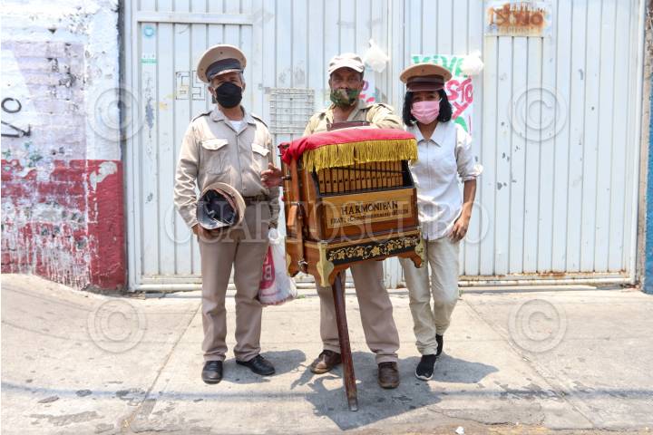 Un grupo de organilleros toca melodías para ganarse unas monedas en la calle de Puente Titla