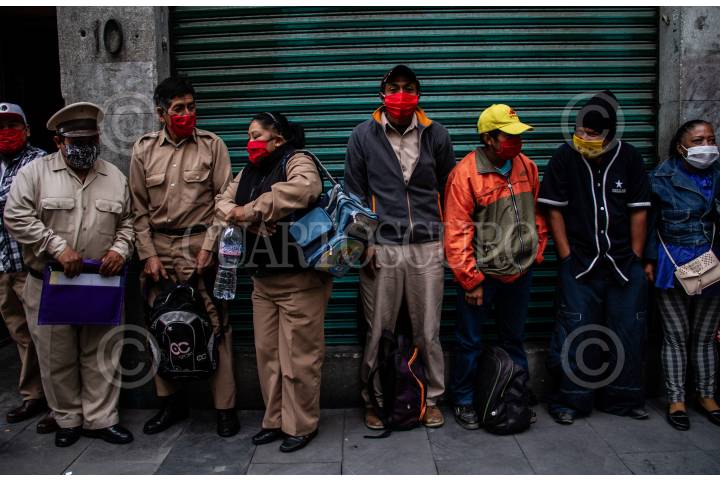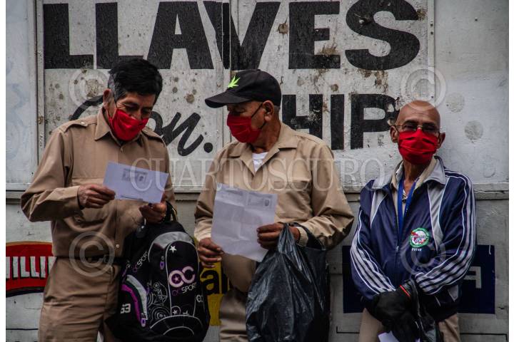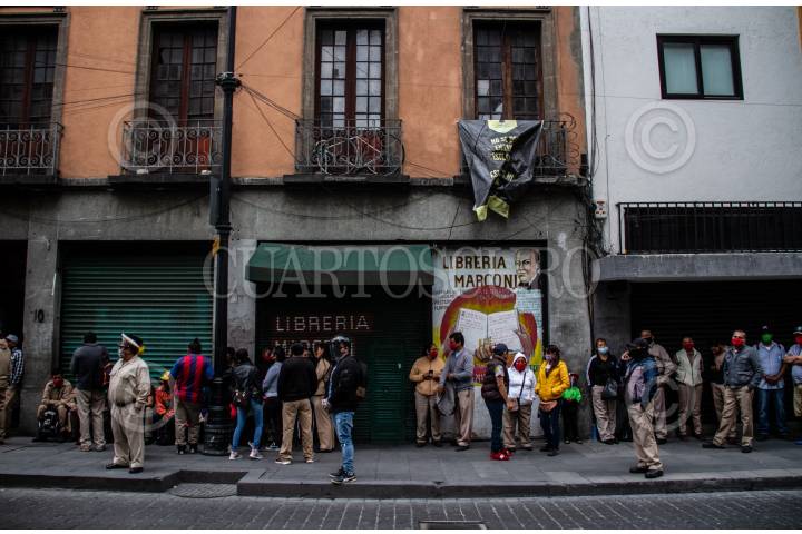 Organilleros de la Ciudad, hacen fila para esperar la donación de despensas por parte de asociaciones cíviles