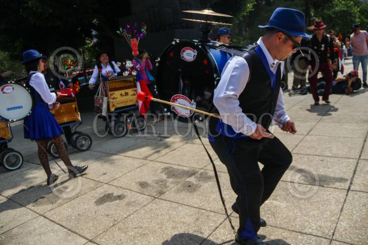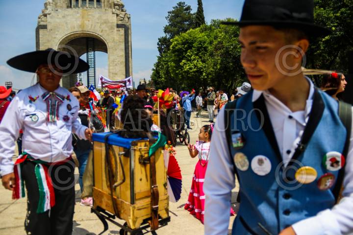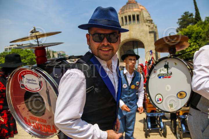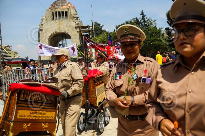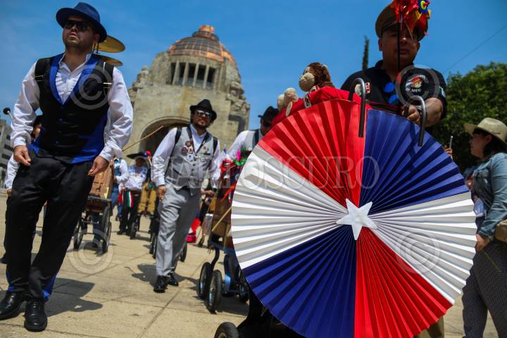 Caminata de organilleros de Chile y México, partieron del Monumento a la Revolución, realzando la hermandad cultural entre ambos países latinoamericanos.