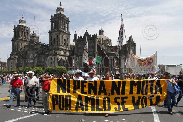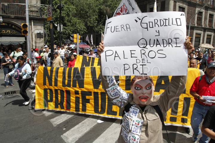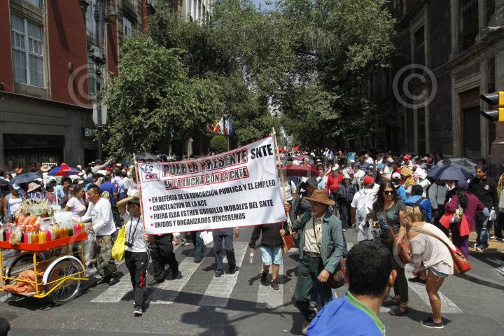 MÉXICO, D.F., 15MAYO2012.- Maestros, organizaciones sociales y miembros del Sindicato Mexicano de Electricistas marcharon de sobre calles de la ciudad de México hasta la Plaza de la Constitución, donde realizaron un mitin en conmemoración por el Día del Maestro. FOTO: ISAAC ESQUIVEL /CUARTOSCURO.COM