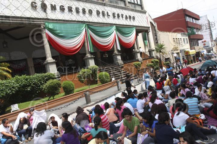 CUERNAVACA, MORELOS, 07SEPTIEMBRE2012.- Alumnos de la escuela Normal de Cuautla realizaron un plantón por la mañana en el Instituto de Educación de Morelos y por la tarde en la calle de Matamoros, frente a las instalaciones de congreso local. Se quejan de que el número del matrícula del alumnado se está reduciendo y que existe favoritismo en el ingreso de los alumnos por parte de la directora. FOTO: ALMA LAFAYET /CUARTOSCURO.COM
