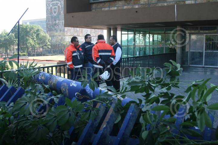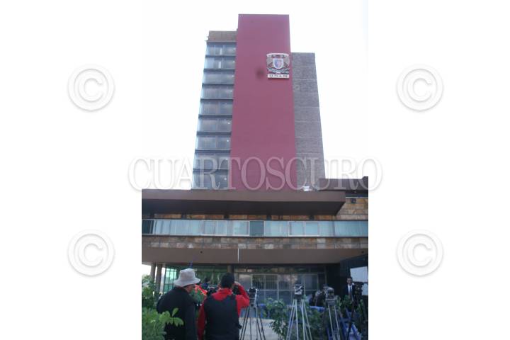MÉXICO, D.F., 01MAYO2013.- Elementos de Protección Civil y Auxilio UNAM, resguardan la Torre de Rectoría de la UNAM, después de que los jóvenes que tenían tomado el edificio abandonaron el inmueble. Los activistas emitieron un comunicado donde aceptan el diálogo, que se llevará a cabo el próximo 09 de Mayo. FOTO: FRANCISCO RODRÍGUEZ /CUARTOSCURO.COM