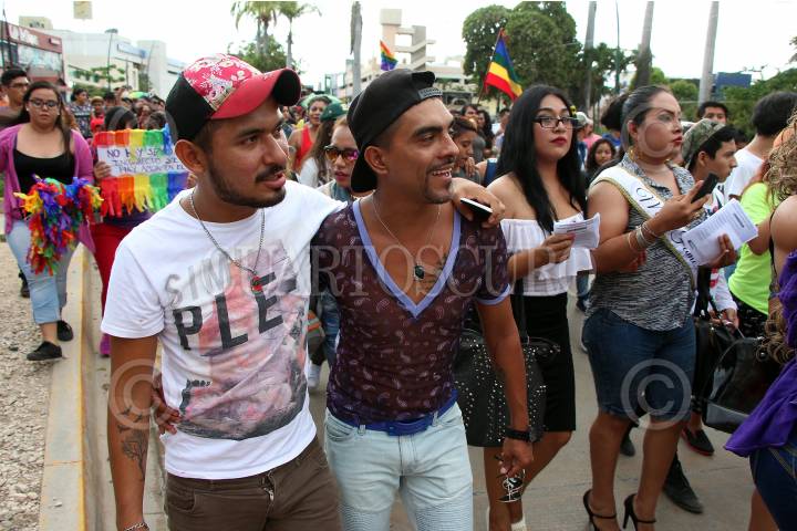 TUXTLA GUTIERREZ, CHIAPAS, 28JUNIO2017.- Se llevó a cabo en la principal avenida de la capital chiapaneca, la Marcha del Orgullo Gay, Lésbico, Bisexual y Trans. Exigieron no más discriminación en los espacios laborales y respeto en condiciones de igualdad. FOTO. JESUS GARCIA /CUARTOSCURO.COM