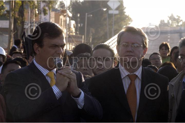 MÉXICO, D.F., 16ENERO2008.- El jefe de gobierno Marcelo Ebrard, en la inauguracion del puente Santa Ana en el eje 3 oriente. Una obra más de las que se han estado realizando en esta ciudad. FOTO. IVAN MÉNDEZ/CUARTOSCURO.COM