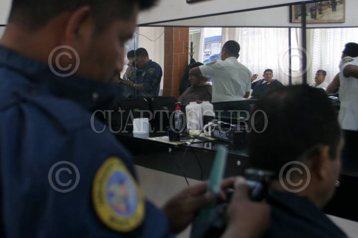 MÉXICO, D.F., 28ENERO2010.- Elementos de la Secretaria de Seguridad Pública cortan el cabello a sus compañeros en la sede del agrupamiento de Granaderos Oriente. FOTO: ENRIQUE ORDOÑEZ/CUARTOSCURO.COM