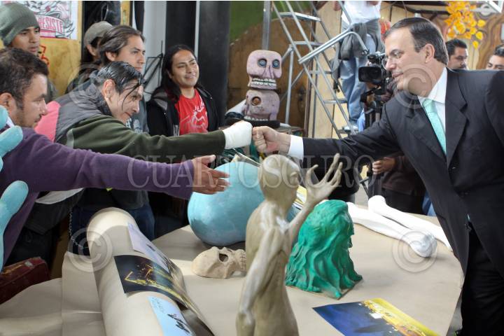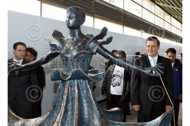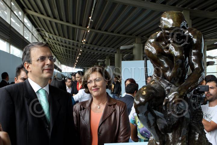MÉXICO, D.F., 09JULIO2010.- Marcelo Ebrard, jefe de gobierno del D.F., durante el recorrido inaugural de la exposición “Del Mito al Sueño… Dalí a Rodin” con esculturas de artistas como Auguste Rodin, Pierre-Auguste Renoir, Émile-Antonine Bourdell y Salvador Dalí que se realizo en la Fabrica de Artes y Oficios (FARO) de Oriente. FOTO: RODOLFO ANGULO/CUARTOSCURO.COM